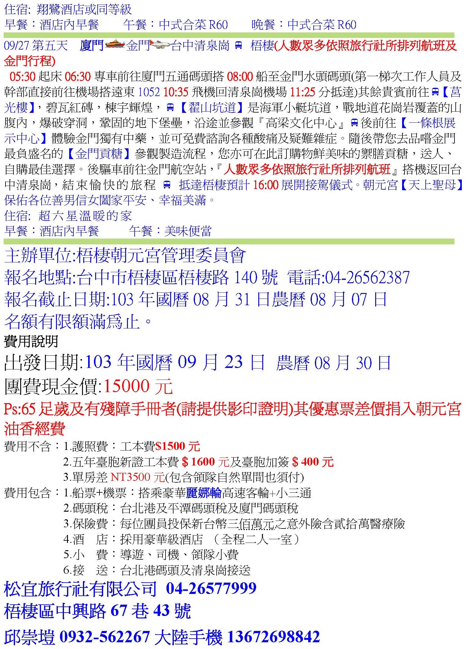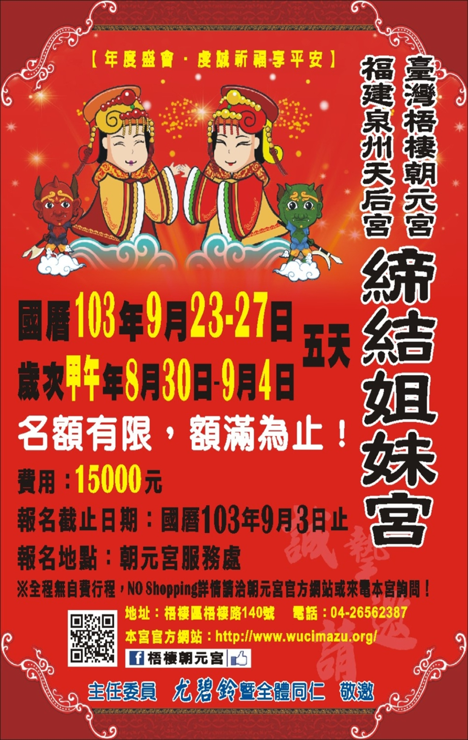 活動日期:歲次甲午(103)年9月23∼27日(農曆)8月30∼9月4日(五天)